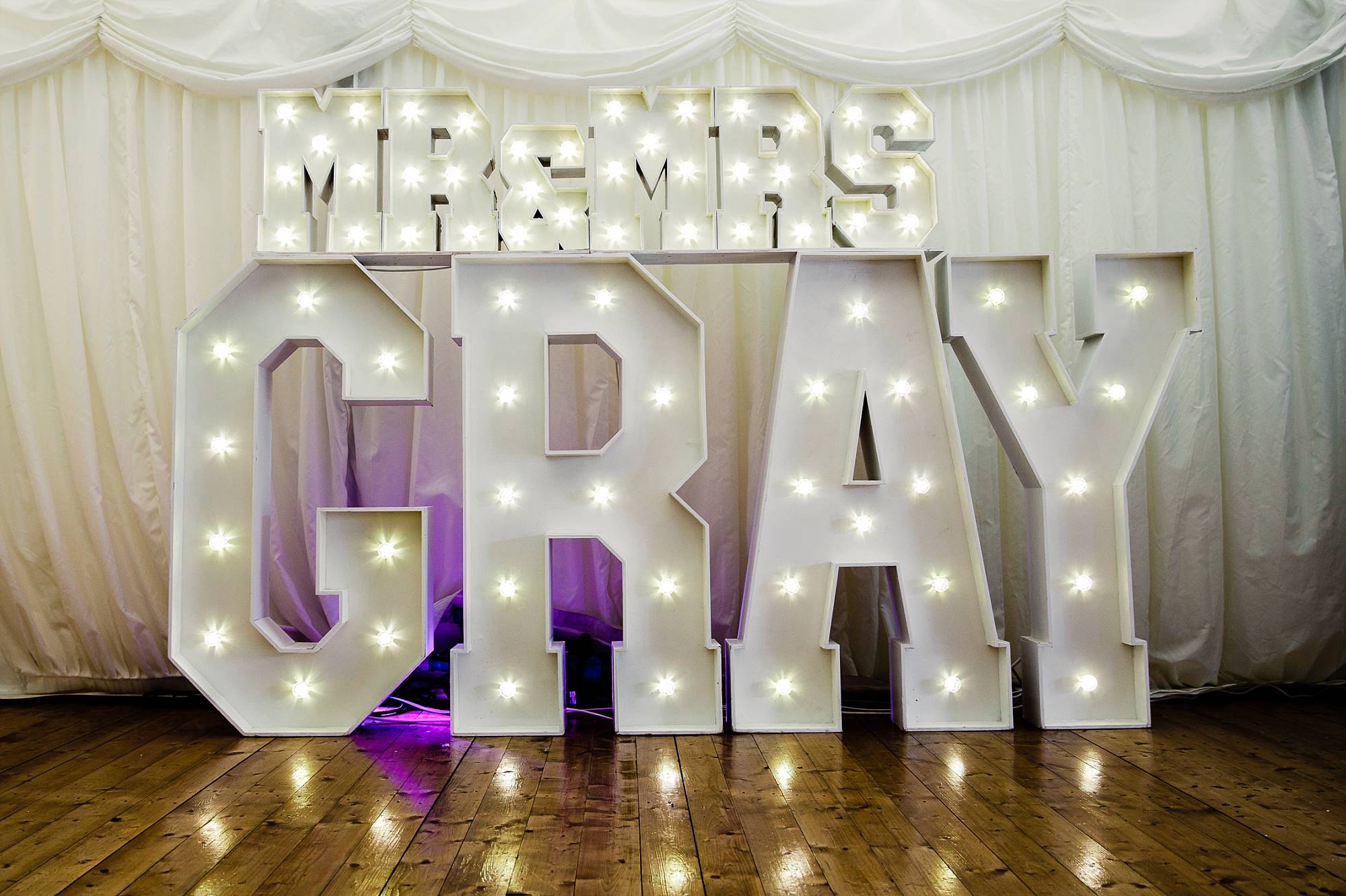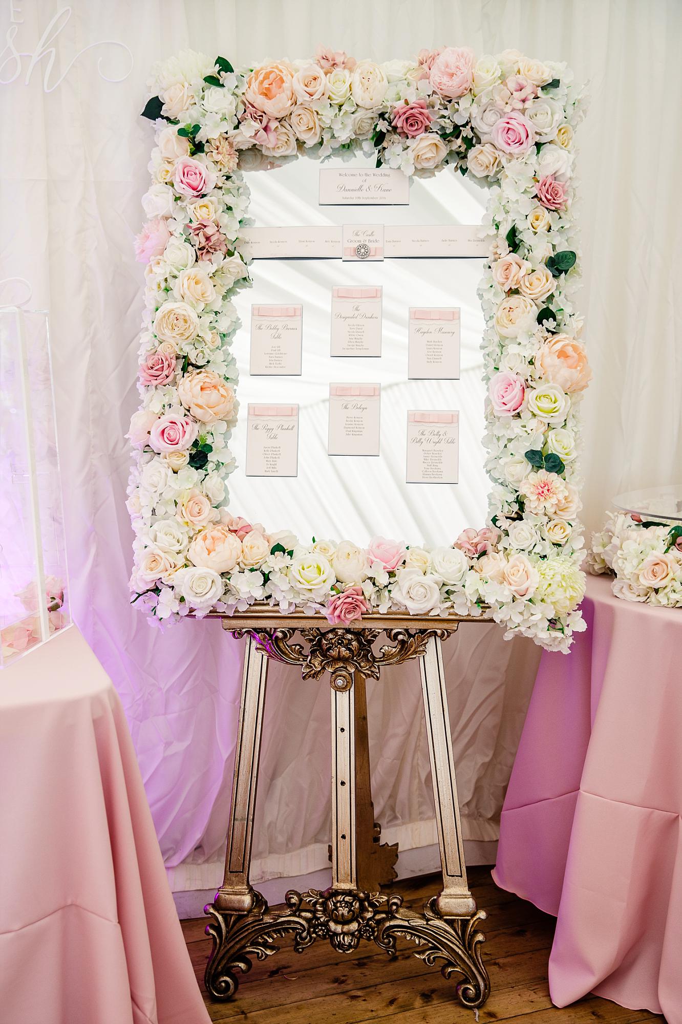 Letter lights, flower wall and table plans - Little Big Things